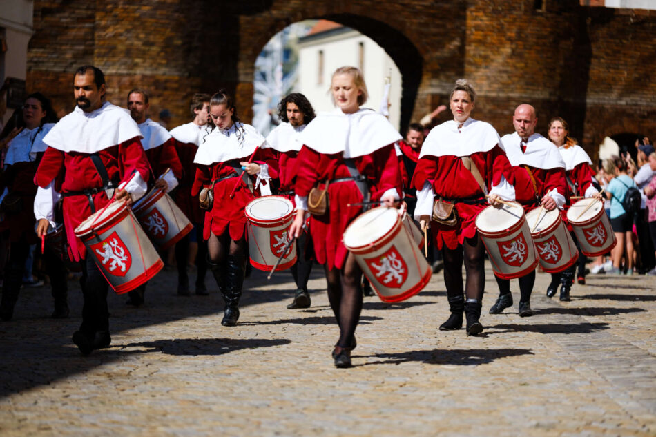Průvod proběhne hned dvakrát – v pátek večer za svitu pochodní a znovu v sobotu odpoledne. Letos v něm bude pochodovat na pět set dobově oděných postav, doprovázených téměř stovkou živých zvířat. Od koní rytířů a urozených členů dvora přes dravce a lovecké psy až po hady a dokonce velblouda.