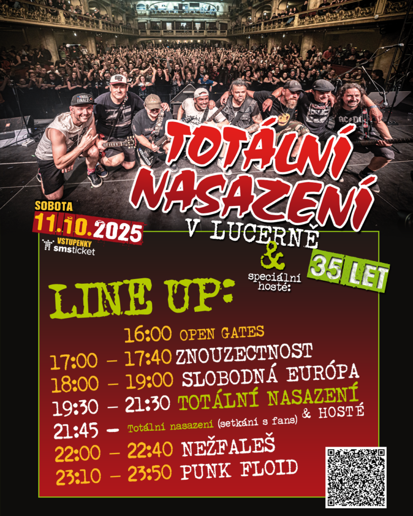 Slánská punk-rocková parta TOTÁLNÍ NASAZENÍ slaví letos na podzim 35 let od svého vzniku a protože v kapele vždy panovaly velmi přátelské vztahy se všemi svými bývalými členy, domluvila se celá tato parta kamarádů, že tyhle pětatřicátiny oslaví společně a že si po letech zopakují mejdan ve velkém sále pražské Lucerny.
