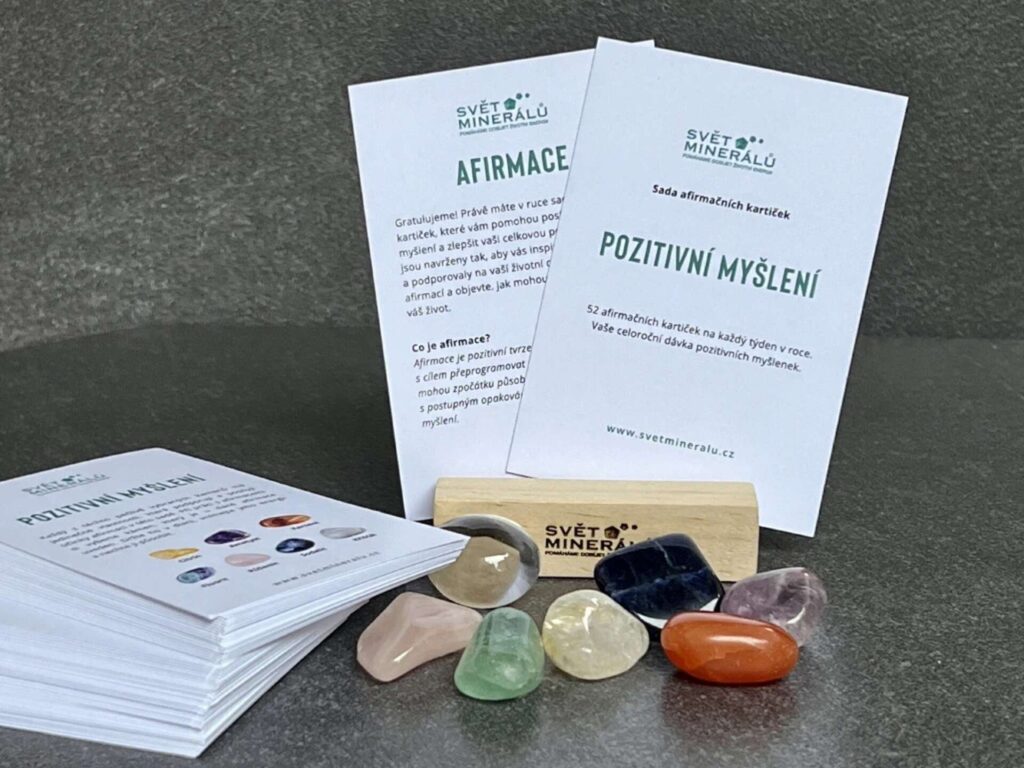 K malým rituálům, které pomáhají žít laskavěji, patří i afirmační karty ze Světa minerálů – sada 52 karet na celý rok s myšlenkami zaměřenými na vděčnost, sebelásku a pozitivní přístup k životu. Každá karta nese krátké povzbuzení a je doplněna o doporučený minerál, který její účinek symbolicky posiluje.